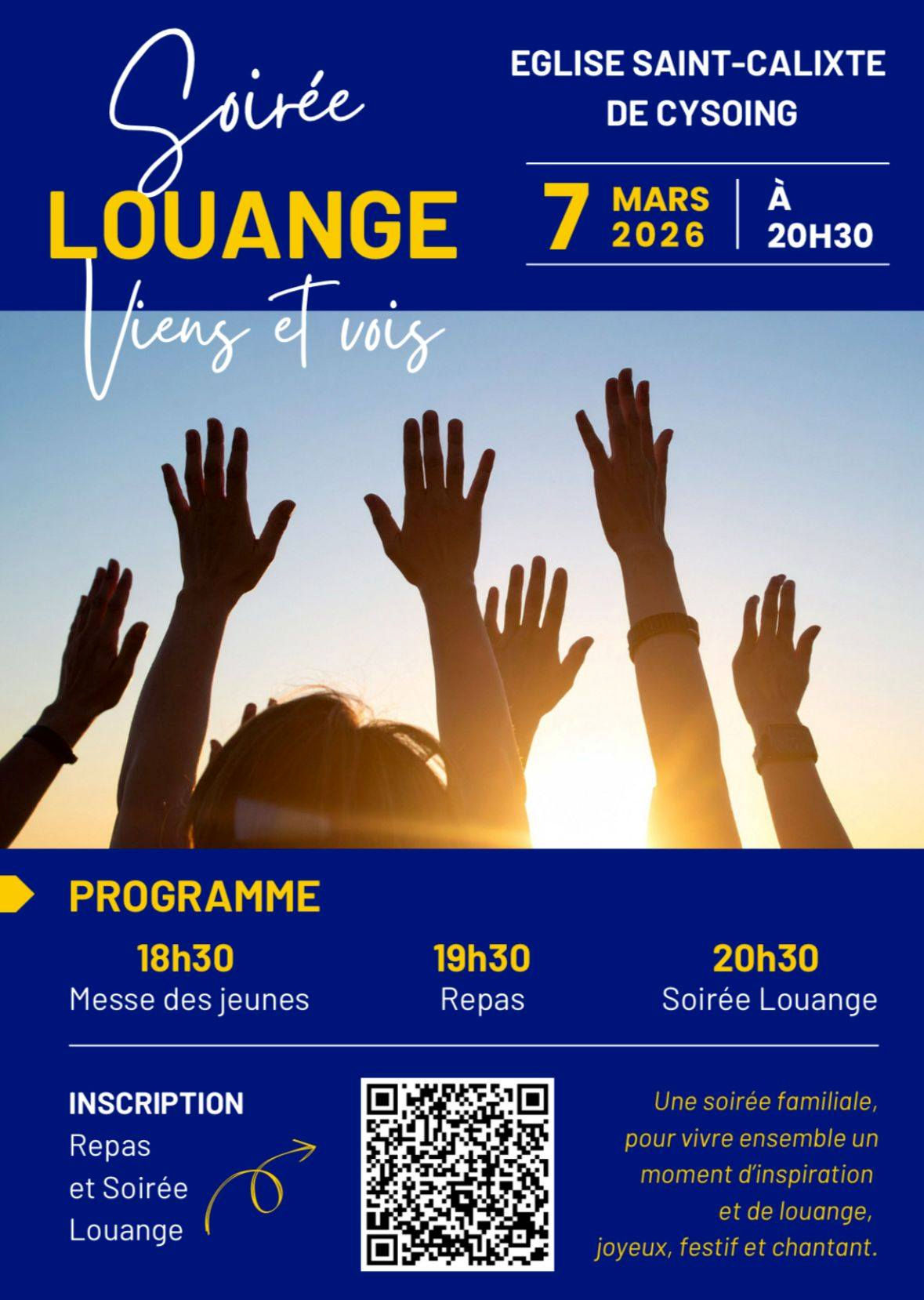 Samedi 07 mars, à Cysoing à 18h30 ; la messe est suivie d’une veillée louange « Viens et Vois ! »